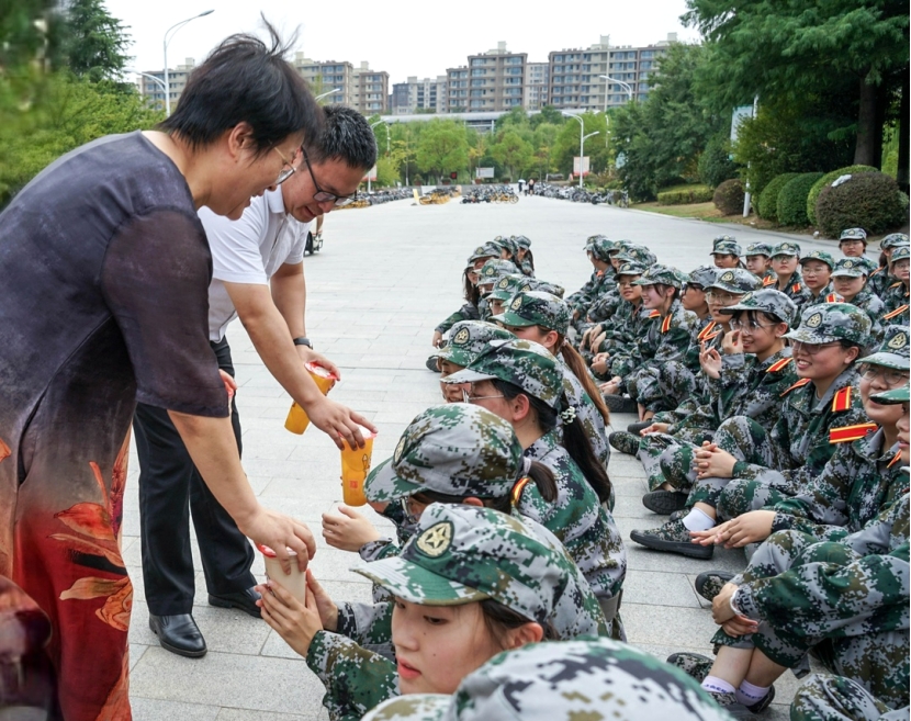 今年的9月10日,正值农历八月十五,是传统的中秋佳节,也是大一新生在校度过的第一个中秋节。为了让第一次离家的小萌新们感受到家一样的温暖,伟德betvlctor体育官网特地为军训期间的新生准备了“秋天的第一杯奶茶”,公司党委书记张仕英、副书记孟祥康和全体新生辅导员一起来到军训现场慰问军训新生。